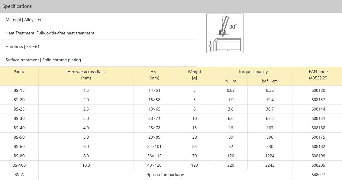 Bộ lục giác BS-A do hãng Tsunoda Nhật Bản sản xuất.