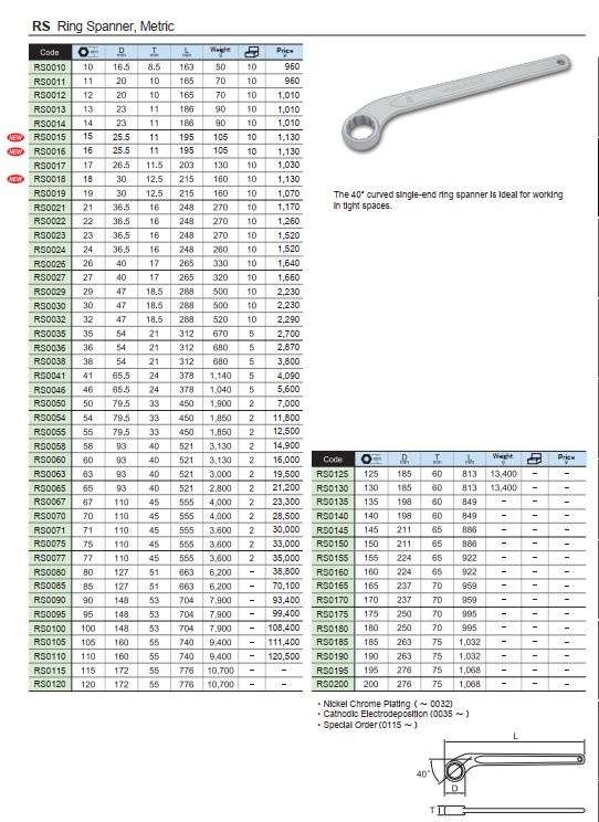 Cờ lê vòng một đầu RS cong 40° lý tưởng để làm việc trong không gian chật hẹp.