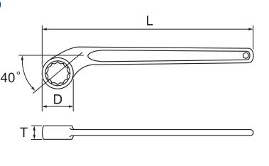 - Cờ lê vòng một đầu RS0027 cong 40° lý tưởng để làm việc trong không gian chật hẹp.