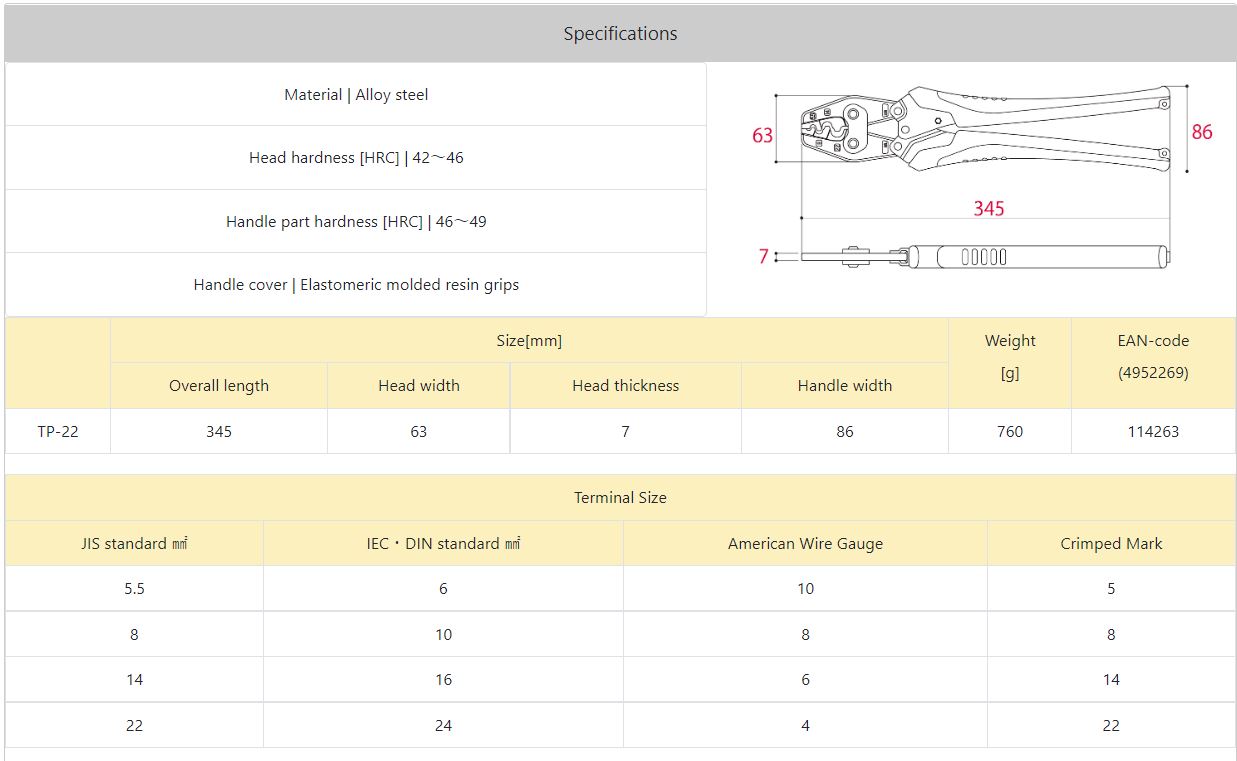 Công ty ASAHI hiện nay đang là nhà phân phối kìm bấm cos TP-22 tại Việt Nam.