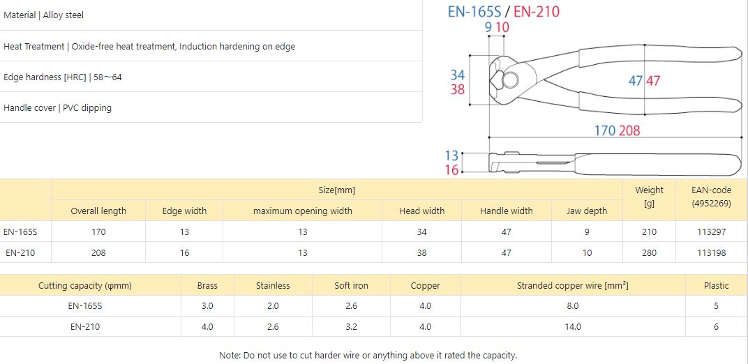 Công dụng kìm cắt mép EN-160S / EN-210 :