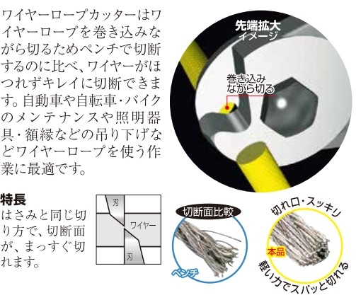 Kìm WC-200/225 dùng để cắt cáp thép xoắn với đường kính 6mm, vết cắt đẹp không bị biến dạng cáp. Tsunoda là thương hiệu nổi tiếng Nhật Bản về Kìm. Công ty ASAHI hiện đang là nhà phân phối sản phẩm trên tại Việt Nam