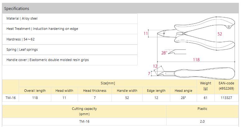 Đặc điểm Kìm cắt TM-16