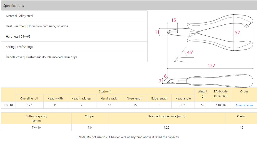 Kìm cắt chân linh kiện TM-10 là kìm cắt lưỡi chéo 45 độ chuyên cắt chân linh kiện điện tử. Với bộ bền cao, thiết kế thuận tiện thao tác. Kìm được nhiều nhà máy đang sử dụng tại Việt Nam.