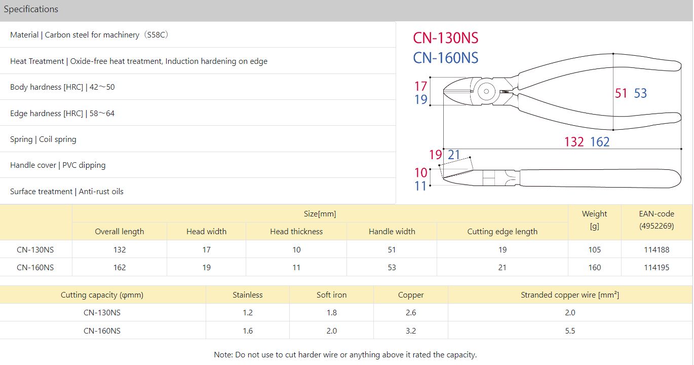 - Model: 130mm CN-130NS / 160mm CN-160NS