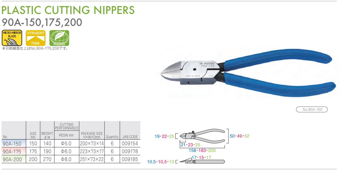 Kìm cắt nhựa 90A-175 do hãng FUJIYA sản xuất tại Việt Nam. Một thương hiệu nổi tiếng Nhật Bản chuyên sản xuất kìm.