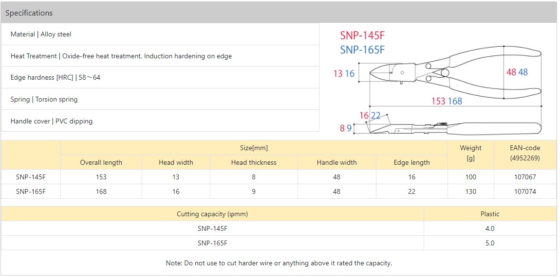 Thông số kỹ thuật kìm SNP-145F Tsunoda: