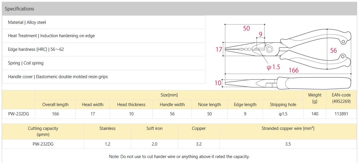 Kìm nhọn đa năng 150mm do hãng Tsunoda Nhật Bản sản xuất. Thương hiệu nổi tiếng chuyên sản xuất kìm.