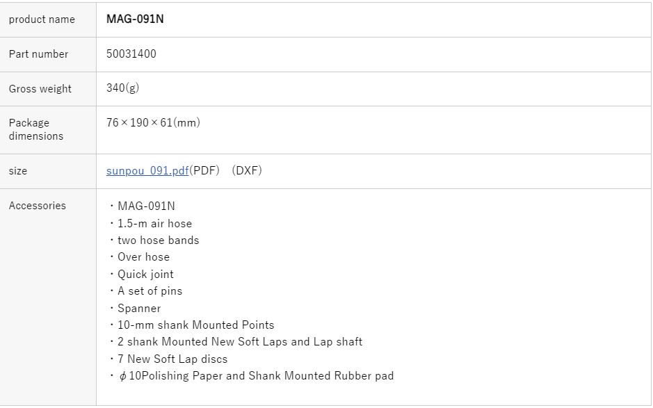 Thông số kỹ thuật máy mài MAG-091N :