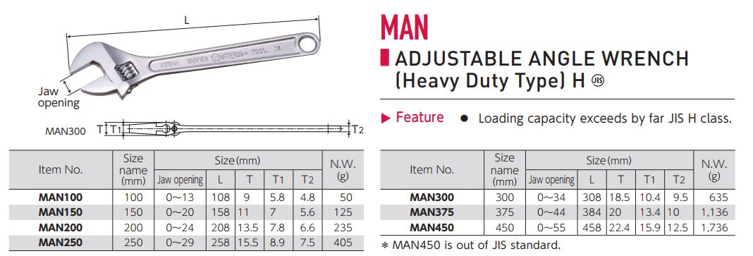 Mỏ lết MAN150 Super là dòng mỏ lết phổ thông đang được các bác thợ dùng nhiều