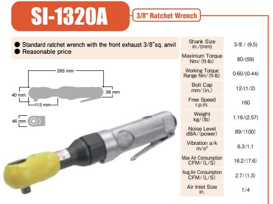 Súng vặn bu lông ngang SI-1320A 3/8'' Shinano