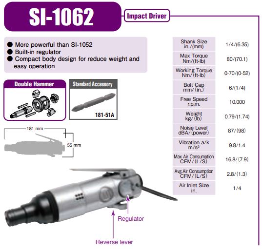 Súng vặn vít SI-1062 là một trong những sản phẩm tiêu biểu, bán chạy nhất của hãng Shinano.