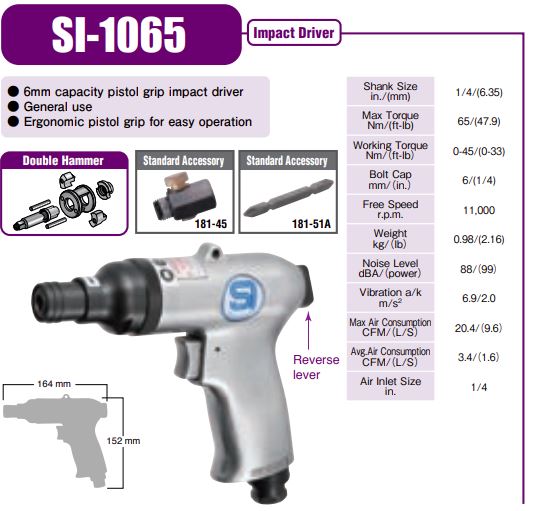 Súng vặn vít SI-1065 là một trong những sản phẩm tiêu biểu, bán chạy nhất của hãng Shinano.