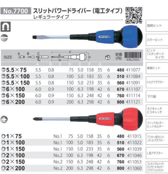 Thông số chi tiết tô vít No.7700+2x200